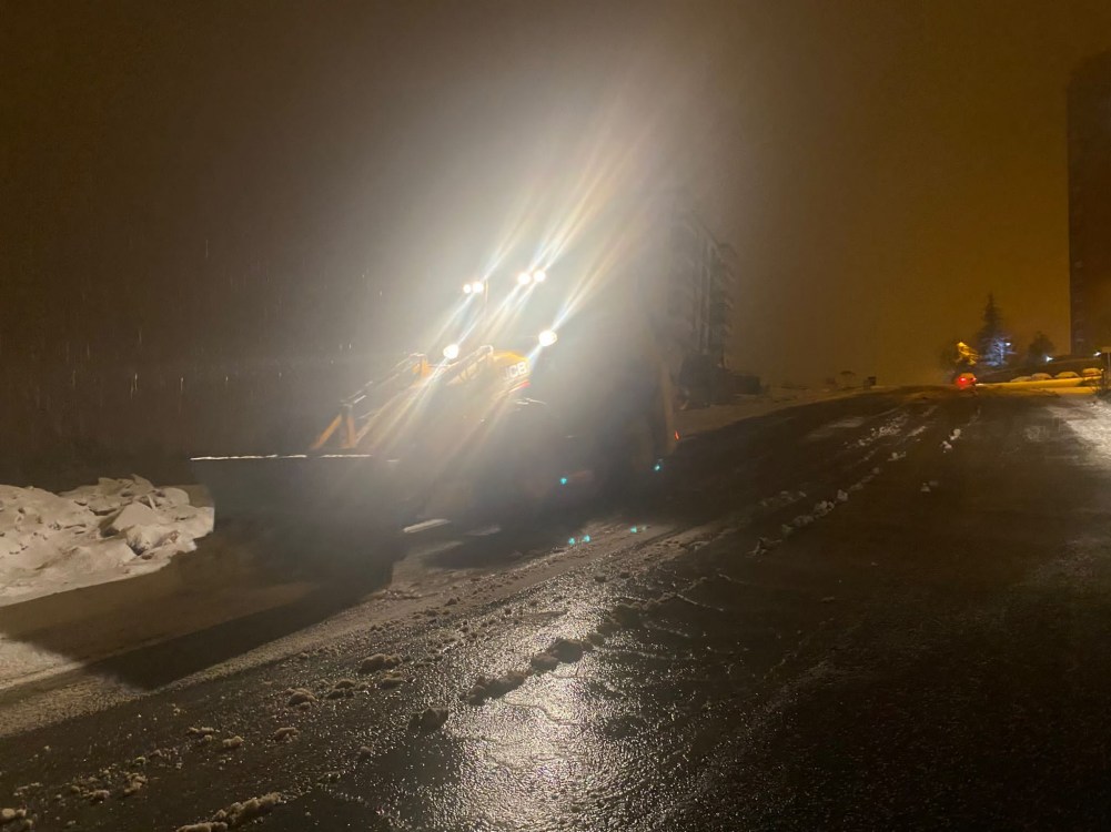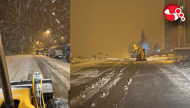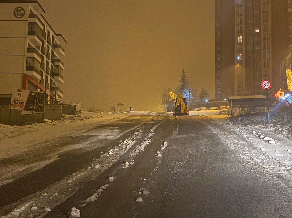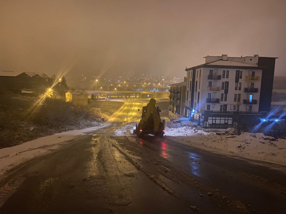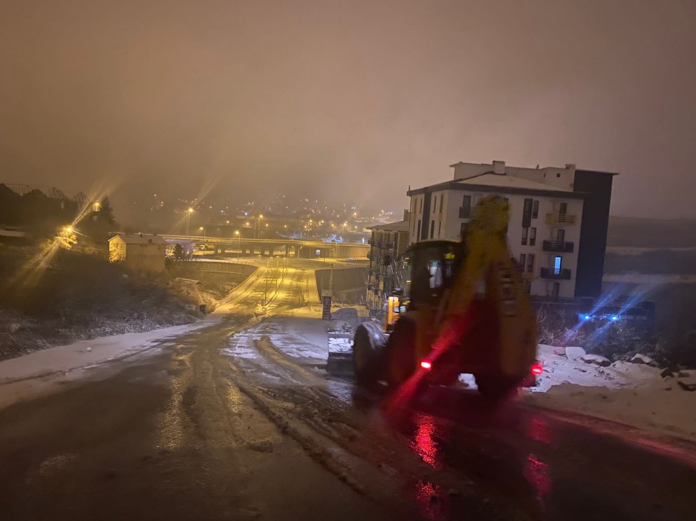 Hastane yolu başta olmak üzere belirli noktalara iş makineleri görevlendirildi. Yol temizleme çalışmaları ihtiyaç duyulan noktalarda gece boyunca anlık olarak sürdürülecek.