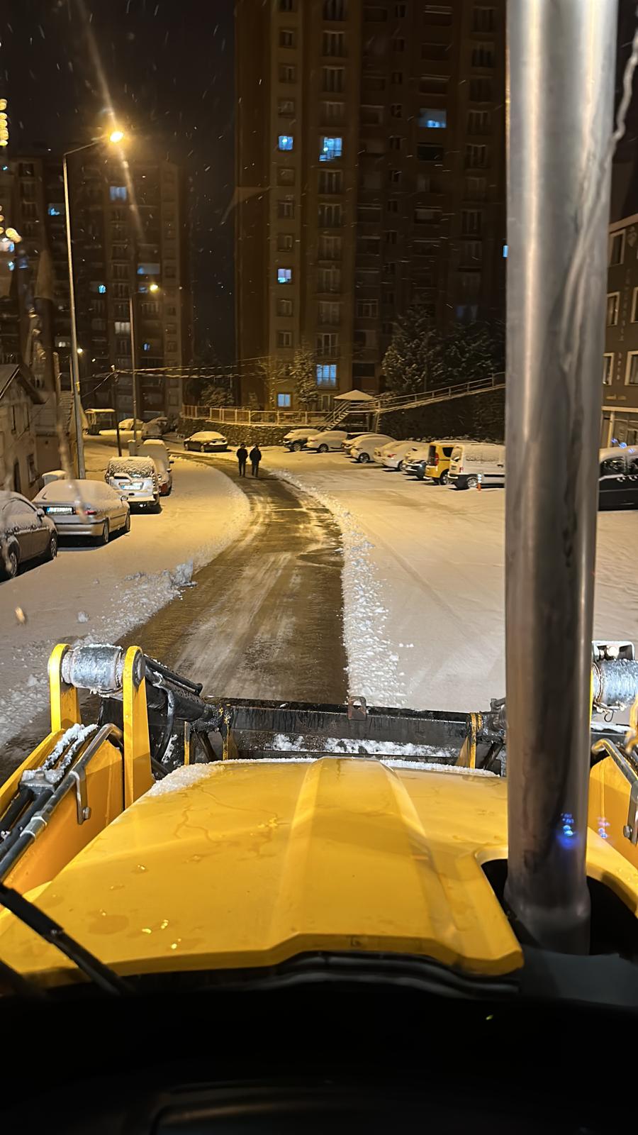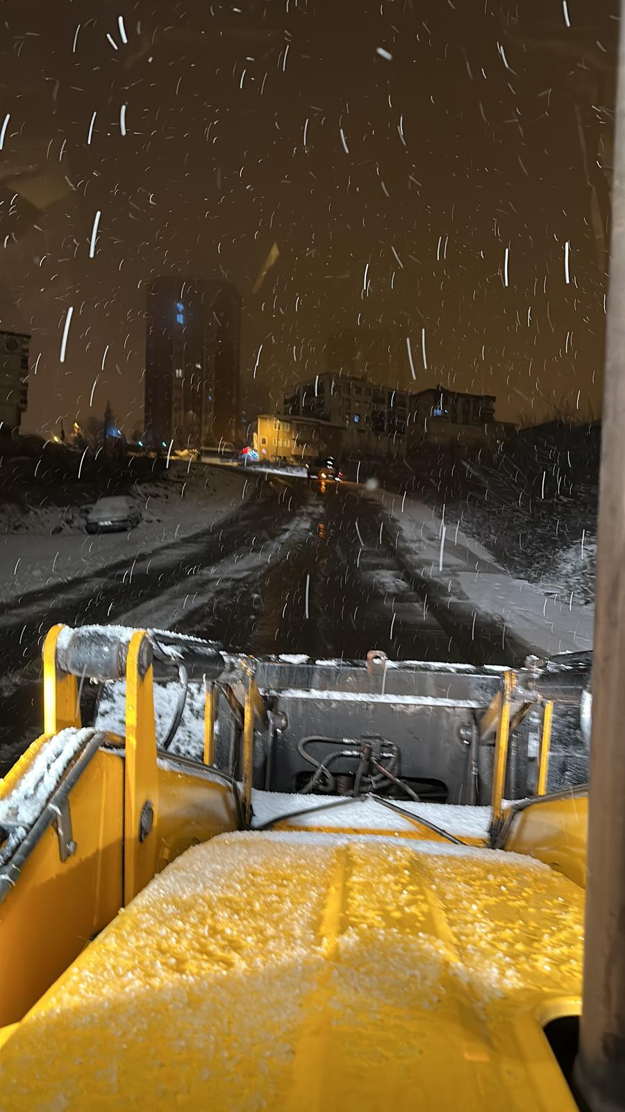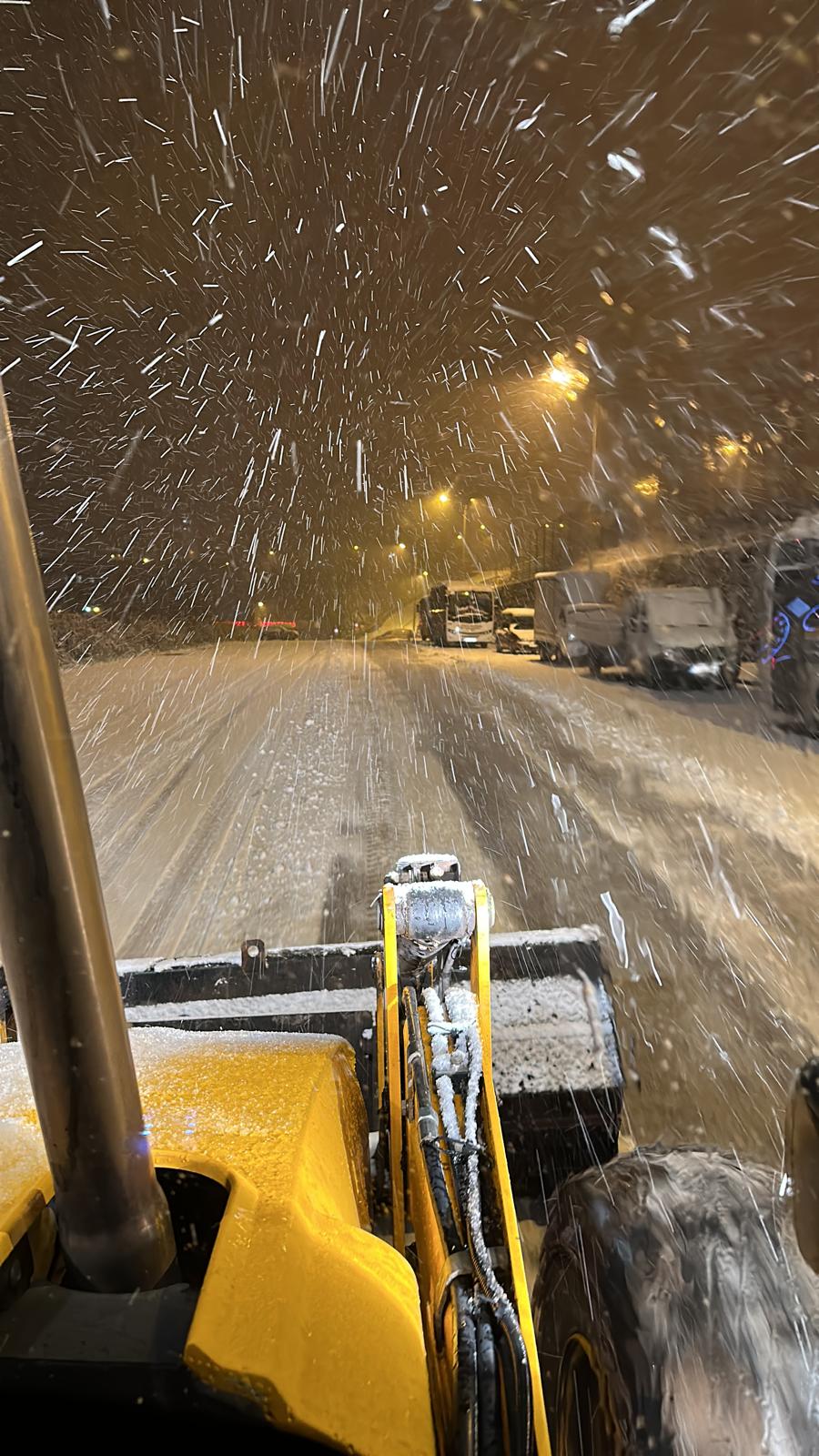 Hastane yolu başta olmak üzere belirli noktalara iş makineleri görevlendirildi. Yol temizleme çalışmaları ihtiyaç duyulan noktalarda gece boyunca anlık olarak sürdürülecek.