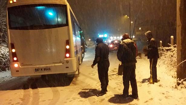 Ereğli'de dün öğleden sonra bastıran ve zaman zaman dolu şeklinde yağan kar, araç sürücülerine zor anlar yaşattı. Devlet hastanesiyolunda meydana gelen kaza sonrasında araçların kalkış yapamaması, yolun trafiğe kapanmasına neden oldu. Bir halk otobüsü de yolda kalınca yol ulaşıma kapandı. Hastaneye giden dik rampadan inen tuzlama aracı durmakta zorlandı. Buz tutan yolda kayan polis aracı vatandaşların yardımı ile çıkarıldı. Tuzlama ekiplerinin çalışmasını tamamlamasının ardından trafik akışı normale döndü.