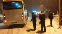 Zonguldak'ın Ereğli ilçesinde, kar yağışı sonrasında Devlet Hastanesi yolunda trafik durma noktasına geldi. Kayan araçlar ve yol açma çalışmaları cep telefonu kamerasına yansıdı.