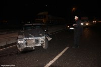 Zonguldak'ın Ereğli ilçesinde gizli buzlanma sebebiyle kontrolden çıkıp köprü duvarına çarpan araçtaki 1 kişi yaralandı.