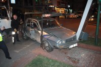 kaldırıma çıkarak reklam tabelasına çarptı. Sürücü Recep Kızılkaya ile eşi