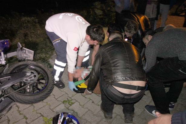 yaklaşık 15 metre sürüklenen motosiklet sürücüsü E. Ö. ve motosiklette yolcu