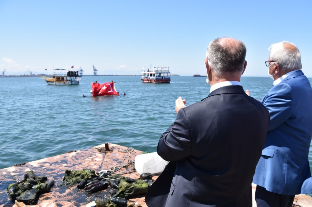 Kdz. Ereğli Kaymakamı İsmail Çorumluoğlu, Belediye Başkanı Halil Posbıyık, belediye meclis üyeleri ve sınırlı sayıda vatandaşın katılımıyla yapılan etkinlikte İtfaiye Müdürlüğü Su Altı ve Su Üstü Arama ve Kurtarma Ekibi dalgıçları tarafından yarım saat süreyle deniz dibi temizliği yapıldı. Dalgıçların su yüzüne çıkardığı çöp çeşitliği hayretler uyandırdı. Lastikten, lavaboya, bira şişelerinden hurda atıklara kadar insan eliyle denize ulaşan çöpleri gören Kaymakam Çorumluoğlu ve Belediye Başkanı Halil Posbıyık, Ereğli halkını çevreye duyarlılık konusunda daha dikkatli olmaya çağırdı.