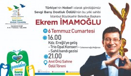 İmamoğlu’na 21.00’de Anıt Önü sahnede Sevgi Barış Dostluk Ödülü takdim edilecek.