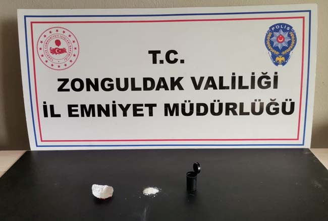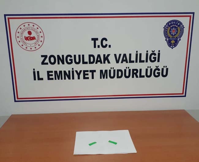 “Zonguldak Narkotik Suçlarla Mücadele Şube Müdürlüğü / Ereğli Narkotik Suçlarla Mücadele Büro Amirliği ekiplerince F.Y. isimli şüpheli şahsın üzerinde yapılan aramada; (2) gr metamfetamin maddesi ele geçirildi. Şüpheli şahsa Uyuşturucu ve Uyarıcı Madde Kullanmak suçundan adli işlem yapıldı.
