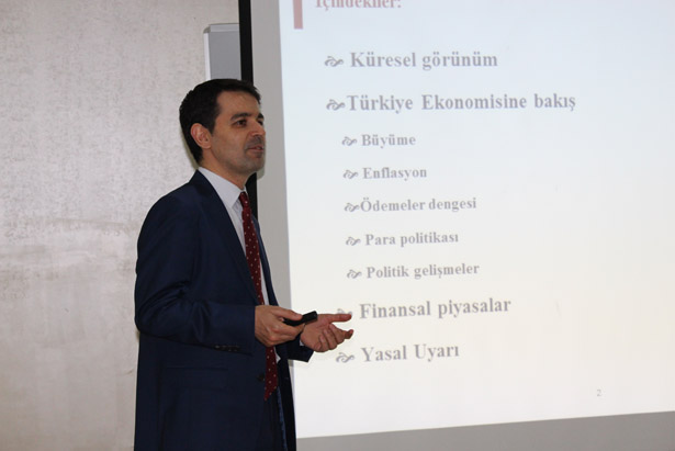 Hotal Grand Ereğli'nin Konferans Salonu'nda gerçekleştirilen seminer kapsamında HSBC Türkiye Portföy Yönetimi Stratejisti İbrahim Aksoy, Türkiye ve global piyasalarda yaşanan gelişmeleri değerlendirirdi.