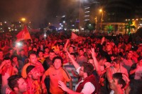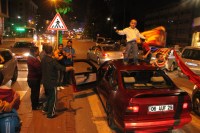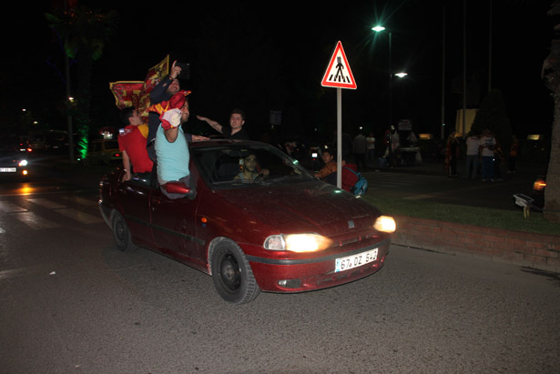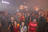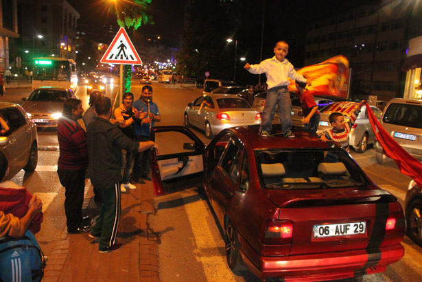 Alınan bu skorla takımlarının şampiyonluğunu kutlamak amacıyla sokağa dökülen Galatasaray taraftarlarının sevinçleri renkli görüntülere sahne oldu. Eşleri ve çocukları ile sokağa dökülen taraftarlar, çocuklarını omuzlarına alarak meşaleler ve tezahüratlar eşliğinde yürüdü. Bazı taraftarların çocukları ise davul zurna eşliğinde araçların tavanına çıkarak göbek attı. Anıt önünde toplanan taraftarlar, önce İstiklal Marşı'nı okudu, daha sonra da Galatasaray marşları ile takımlarının şampiyonluğunu kutladı. Taraftar gurubunun arasına giren hız motoru ise tam gaz yaparak şampiyonluk kutlamasına destek verdi.