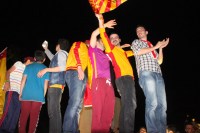 Zonguldak'ın Ereğli ilçesinde, Galatasaray'ın şampiyonluğunu ilan etmesiyle taraftarlar sokağa döküldü. Eşleri ve çocukları ile sevinç gösterileri yapan taraftarlar, şampiyonluğu doyasıya kutladı. Bazı küçük Galatasaray taraftarları ise arabanın üzerine çıkarak davul zurna eşliğinde göbek attı.