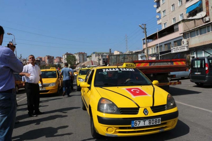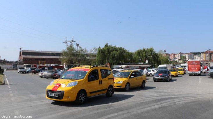 Zonguldak'ın Ereğli ilçesinde taksiciler son günlerde artan terör olayları sebebiyle araçlarını Türk bayraklarıyla donatıp, klakson çalarak teröre tepki gösterdi.