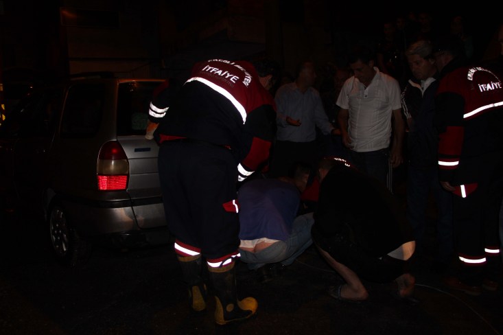 Olay yerine gelen itfaiye ve iş makineleri yola gömülen aracı kurtardı. Güldere