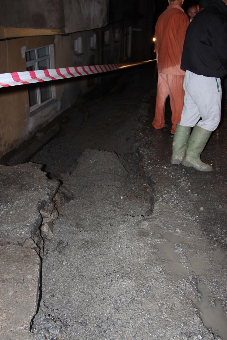 çöken yolun üzerini kum ile doldurmaya çalıştı. Cumartesi pazarı mevkisinde ise