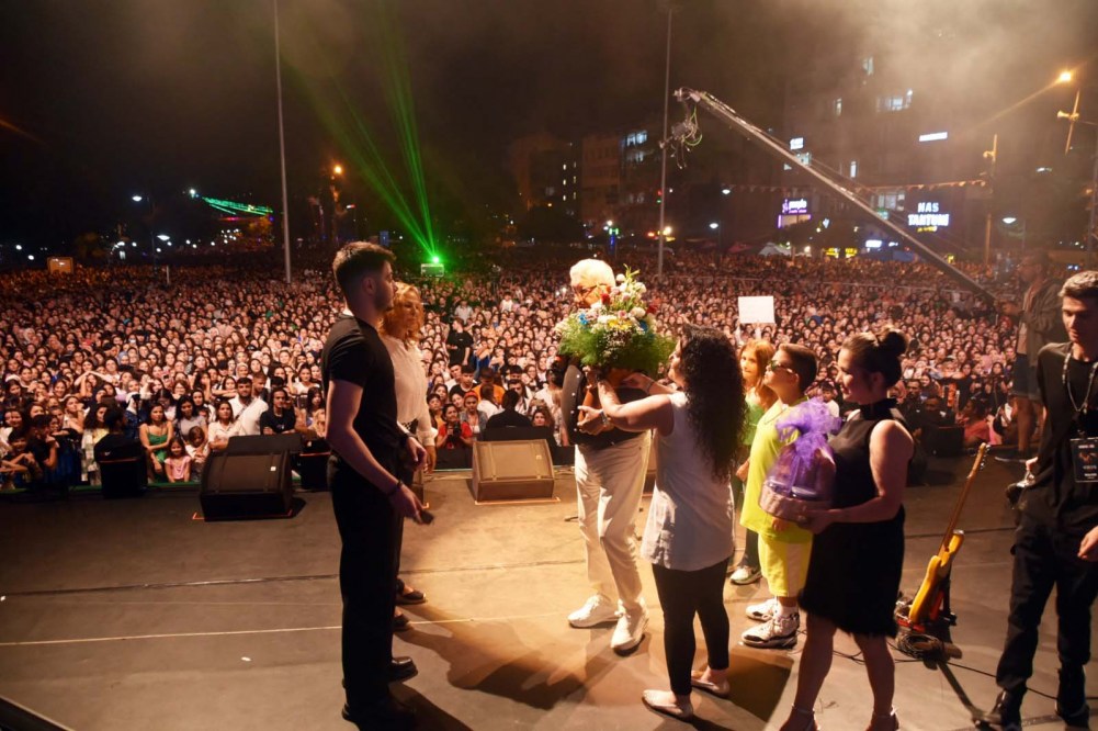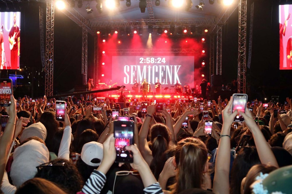 Açık hava halk konserinde sahne alan Semicenk’in şarkılarına yüzbinlerce insan eşlik etti. Birbirinden güzel şarkıları ve 3 saat süren sahne performansıyla unutulmaz bir gece yaşatan Semicenk, müzisyen arkadaşları Doğu Swag ve Rast ile de düet yaptı. Semicenk, Rast’ın doğum gününü de sahnede pasta keserek kutladı.
