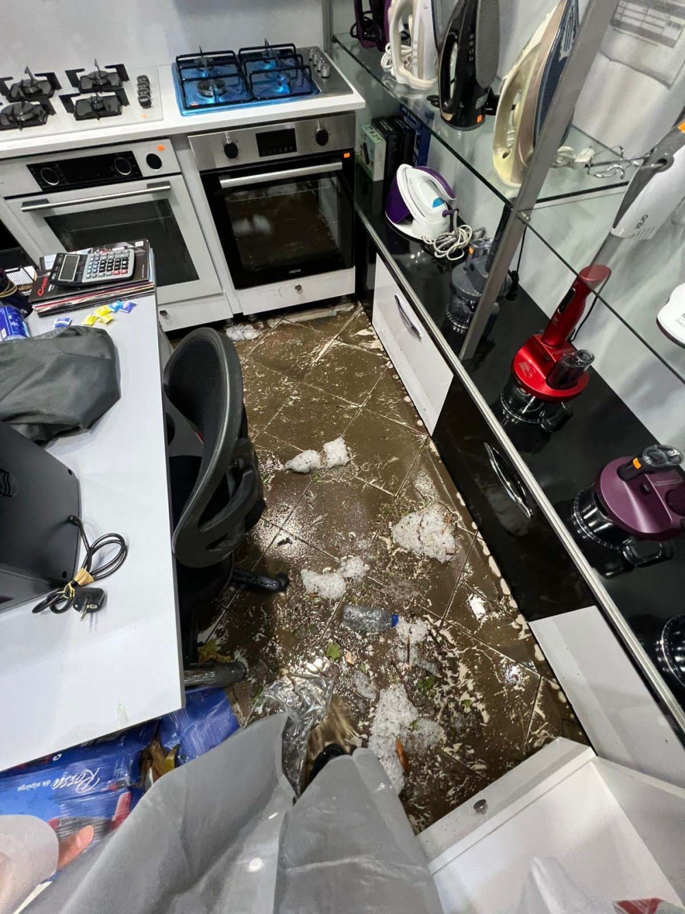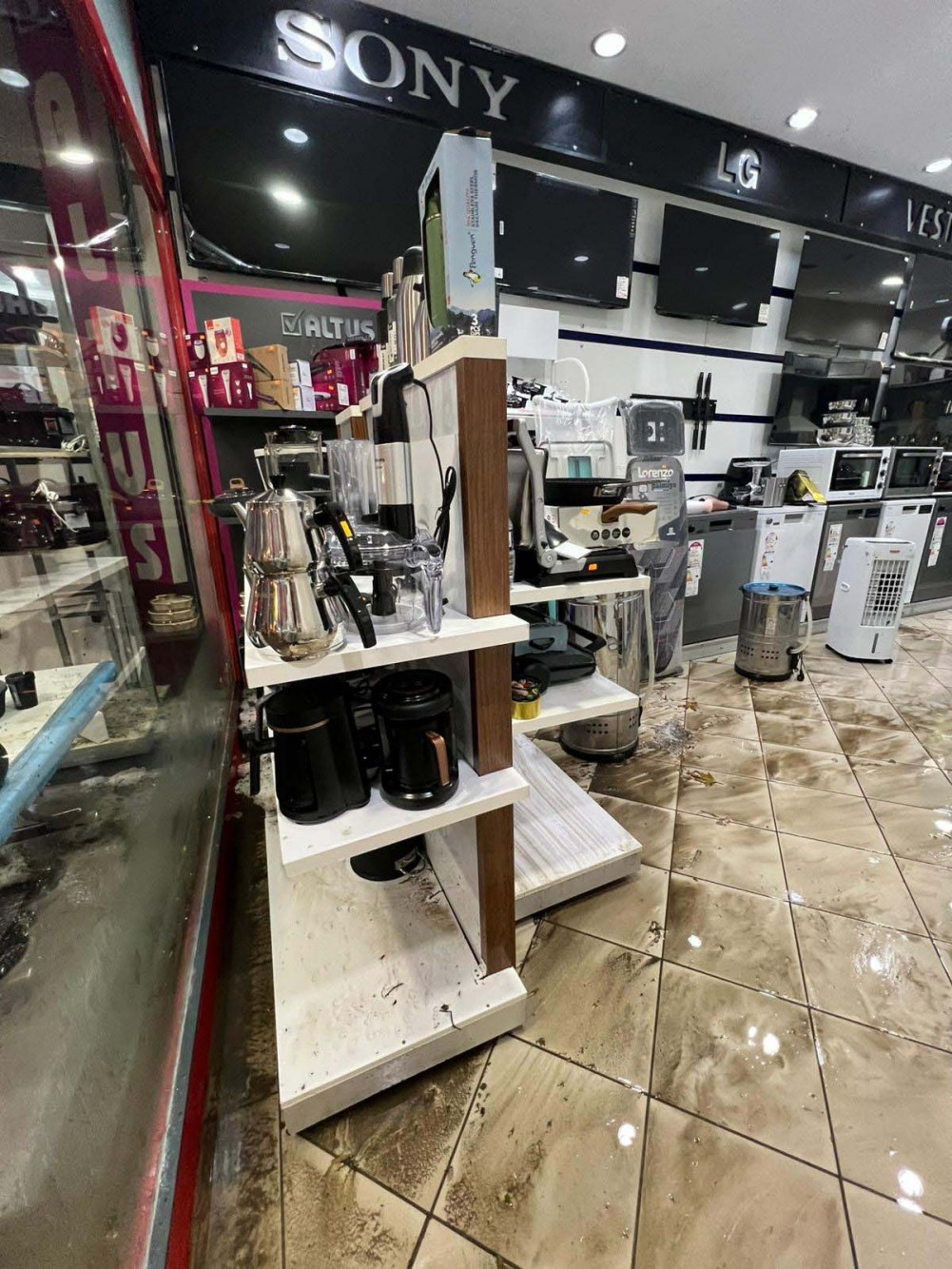 Yüksel Yağmuroğlu isimli esnaf da mazgalın yetersizliğinden şikayet ederek, "Dolu yağışı oldu. Mazgal gideri ufak ve tek gideri olduğu için doldu. Üzeri su taştı. Ondan sonra malzememiz kot seviyesi aşağıda olduğu için ilk direkte su yüksekliği hemen hemen 50 santimetre civarındaydı. Beyaz eşya ve elektronik mağazamız olduğu için elektrikli bölümler arıza yaptı. Bugün kaymakamlıktan arkadaşlar geldi, tespitleri yapıyoruz" diye konuştu.
