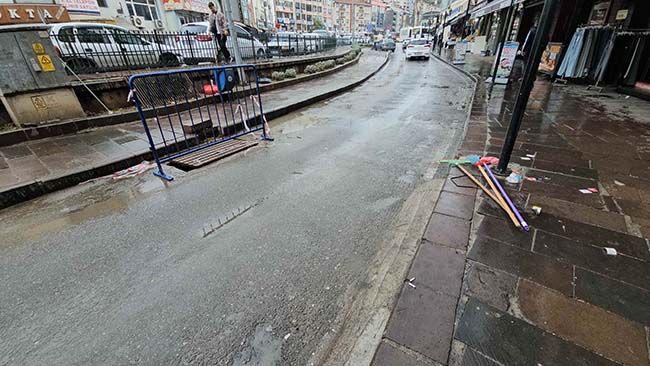 İlçede yaklaşık 10 esnafın iş yerinin su altında kaldığı caddede, sabah saatlerinden itibaren temizlik yapıldı. Çamurla kaplanan zeminler temizlenirken, bazı esnaf kullanılamaz hale gelen ürünlerini dışarı çıkardı. İş yeri sahibi Erkan Bayraktar, "Yaşadığımız doğal afet değil. Bu caddede bir tane mazgal var. O mazgalın tıkanmasından dolayı bütün felaketi yaşadık. 10 dakika içerisinde her şey oldu bitti. Tabandaki bütün ürünlerimiz suya girmiş durumda. Yaklaşık 400 bin liralık zarara uğradık. Belediye hariç bütün devlet kurumları geldi. Belediye ile hala görüşemedik. Hiçbiri gelmediler şu anda. Buna da şükür, canımız yerinde" dedi.