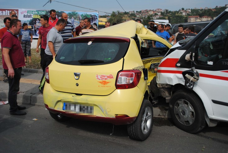 ticari taksi ile çarpıştı. Kazada yaklaşık 30 metre sürüklenen takside sıkışan