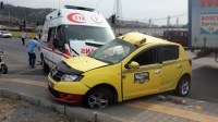 çıkarıldı. Yaralı sürücüye taksiye çarpan ambulansın sağlık görevlileri