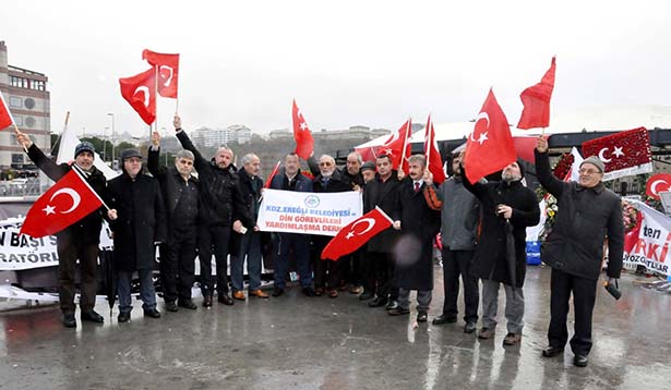 44 polis ve sivilin şehit olduğu İstanbul Beşiktaş'taki Şehitler Tepesi'ne giden Karadeniz Ereğli Din Görevlileri Yardımlaşma Derneği, Kdz. Ereğli halkının dualarını getirdiklerini belirterek şehitler anısına kırmızı karanfil bırakıp, dualar ve ilahiler okudu.