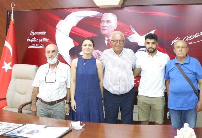 Adana Demirsporlu Almanya doğumlu Ereğlili futbolcu Sinan Kurt eşi ve dedesi ile birlikte Belediye Başkanı Halil Posbıyık’ı ziyaret etti.