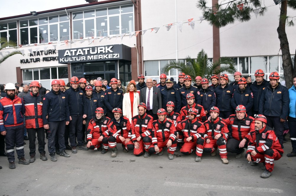 “Deprem sabahı durumu öğrendiğimizde İtfaiye Müdürü beni aradı, direk talimat verdim bölgeye gidin diye. Hiçbir yerden izin almadan ilk etapta 16 kişilik arama kurtarma ekibi, ilk bölgeye giden ekip oldu. Daha sonra 21 kişilik çadır kurmak ve malzeme dağıtımında yardım etmek üzere 21 kişilik ekip gönderdik, daha sonra da gönüllülerin de olduğu 18 kişilik ekibi İtfaiye Müdürü Muhammet Ali Ateş’in koordinasyonunda bölgeye gönderdik. Ekiplerimiz 9 gün bölgede yaptıkları çalışmalarda 7 vatandaşı enkaz altından canlı çıkardılar, 32 vatandaşımızın da cansız bedenini yetkililere teslim ettiler. Gayretleri için tüm halkımız adına kendilerine teşekkür ediyorum.”