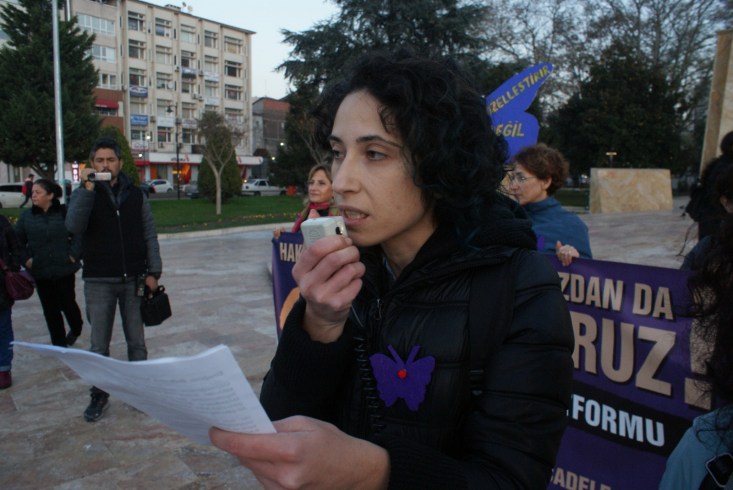 Karadeniz Ereğli Kadın Platformu Sözcüsü Duygu Aydın, "Özgürlüğümüze, bedenimize, hayatımıza, kadın mücadelesine yönelik saldırıları; bizlere reva görülen bu düzeni kabul etmiyoruz... Sözümüzü örgütleyebilme, yan yana gelme ve hayatı değiştirme iradesinde ve iddiasındayız. Biliyoruz ki, bizi kenara iten, yok sayan, emeğimizi görünmez kılan, bedenlerimizi metalaştıran sömürü çarkının dişlisine bir çakıl taşı olup takıldığımızda bu çark dönmeyecektir" dedi.