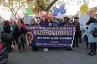 Karadeniz Ereğli'de, Ereğli Kadın Platformu tarafından 25 Kasım Kadına Yönelik Şiddete Karşı Uluslararası Dayanışma ve Mücadele Günü nedeniyle yürüyüş ve basın açıklaması yapıldı.