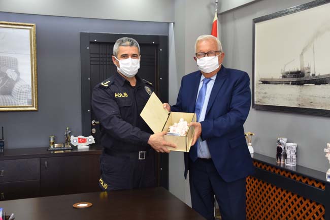 Emniyet Müdürü Hasan Ünlü de Başkan Posbıyık ve ekibine ziyaretleri için teşekkür etti. Başkan Posbıyık, ziyaret anısına Ünlü’ye Herkül heykeli hediye etti.