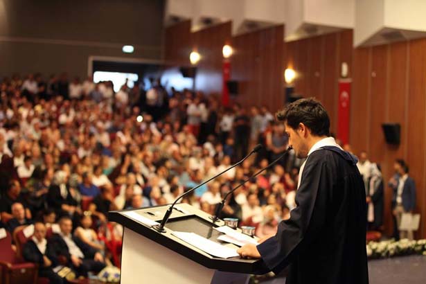 Değerli ailelerimiz, bizleri dünyaya getirdiğiniz andan itibaren, üzerimize titrediniz, emek verdiniz ve gözbebeğiniz olduk. Zaman zaman bize hiç hissettirmeden üzüldünüz, kaygılar duydunuz. Artık bizim geleceğimiz konusunda lütfen korku ve kaygılar yaşamayınız. Hiç şüpheniz olmasın ki Yıldızlı mezunlar olarak ülkemize yararlı bir yurttaş, size layık birer evlat olmak için var gücümüzle çalışacağımıza söz veriyoruz. Umut ediyoruz ki ülkemizin sanayisinde bürokrasinde ve daha birçok yerinde yaptıklarımızla gurur duyacaksınız."