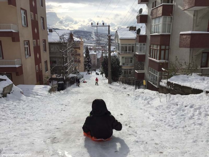 Kar yağışı altında geçen yılbaşı ve hafta sonu tatili çocuklara yaradı. Hatip Caddesi'nde karı temizlenmeyen ara sokaklarda çocuklar kızak kaydı, kartopu oynadı.