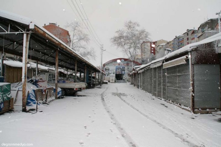 Tamamen karla kaplı olan ve temizleme çalışması yapılmayan Cumartesi Pazarı'nda sadece Zabıta Müdürlüğü ekipleri hazır bulundu. Zabıta ekipleri sabah saatlerinde incelemelerini yapmalarının ardından pazaryerinden ayrıldı.