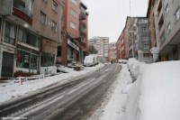 Hatip Caddesi bölgesindeki ana arterlerde de kaygan yollar nedeniyle sürücülerin büyük bölümü trafiğe çıkamadı.