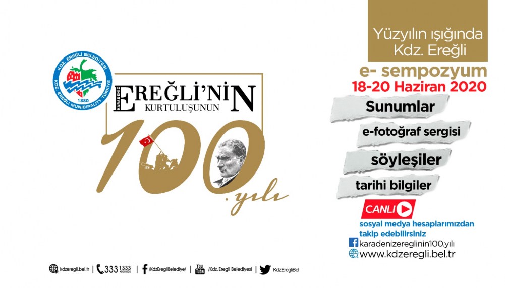 Kdz. Ereğli Belediyesi tarafından düzenlenen “100 Yılın Işığında Karadeniz Ereğli” Sempozyumu, Koronavirüs önlemleri çerçevesinde 18-19-20 Haziran tarihlerinde internet ortamında gerçekleştirilecek.