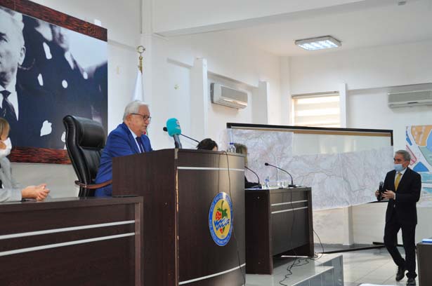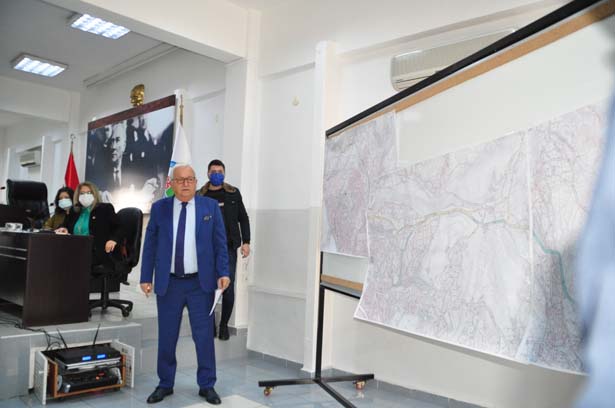 Başkan Yardımcısı Haluk Okur da harita üzerinde, yol güzergâhları ve son durum hakkında Meclis üyelerini bilgilendirdi.