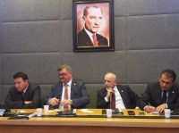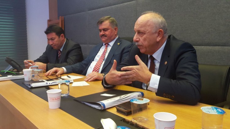 AK Parti Merkez Disiplin Kurulu Başkanı ve Zonguldak Milletvekili Hüseyin Özbakır, Faruk Çaturoğlu ve Özcan Ulupınar, Cumhuriyet Halk Partisi Zonguldak Milletvekili Ünal Demirtaş ve Şerafettin Turpçu'nun katıldığı toplantıda konuşan grubun sözcüsü MHP İlçe Başkanı Rahman Demirtürk, "Bölgemizin sorunları ve çözüm önerilerini tartışmak ve sonuca ulaştırmak için bugün ekip arkadaşlarımızlşa birlikte Ankara'ya geldik. Şuan itibariyle toplantımız devam ediyor", dedi..