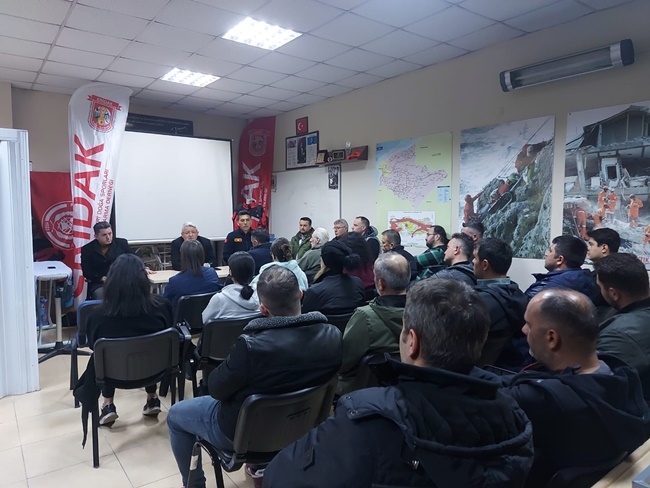Ereğli İtfaiyecileri Doğa Sporları Arama Kurtarma Derneği Onursal Başkanı Muhammet Ali Ateş ve Dernek Başkanı Burak Demirören bölgeye giden arama kurtarma ekibi ile bir araya gelerek toplantı düzenledi.