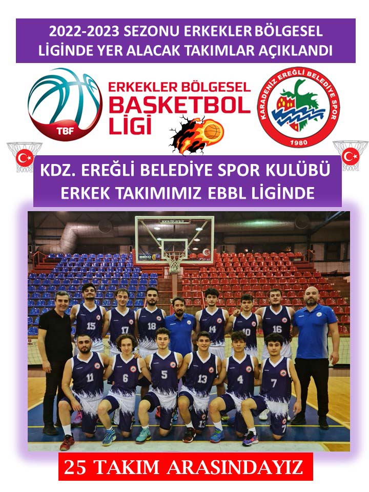 dz. Ereğli Belediyespor, futboldan sonra 2022-2023 sezonunda 25 takımın yer aldığı Erkekler Bölgesel Basketbol Ligine katılıyor