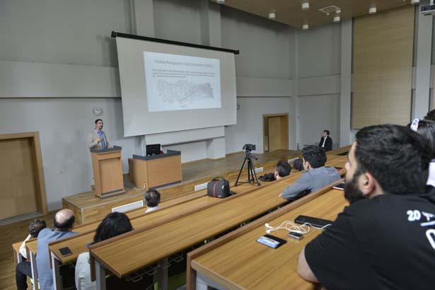 Konuşmacı Arş. Gör. Gürbüz de Türkiye'de 146 sürekli gözlem yapan GPS istasyonunun olduğunu, analiz merkezi ile 4 ayrı uydudan koordinat bilgilerine ulaşılabildiğini, böylece atmosfer tabakasında bilgiler elde edilerek meteorolojik olaylara ilişkin gelişmelerin gözlemlenebildiğini söyledi.