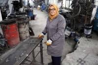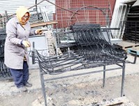 dört kız çocuğu annesi 54 Nezahat Demirbaş, ferforje işi yapan eşine destek