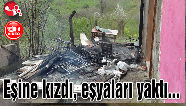 Eşine kızdı, eşyaları yaktı...