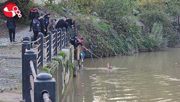 Edinilen bilgiye göre, Bartın Yalı mevkisinde ırmak kenarına gelen ve bir süre korkulukları tutan Y.S., eşiyle telefonla görüntülü görüşmesinin ardından ırmağa atladı. Polislerin tüm çabalarına rağmen suya atlayan şahıs, uzun uğraşlar sonucunda sudan çıkması konusunda ikna edildi. Bir süre şahsı ikna etmeye çalışan polis ekipleri, diğer taraftan da eline geçirdiği dal parçası, mont ve hırka gibi kıyafetleri tutması için şahsa uzattı. İkna edildikten sonra bulunan halat yardımıyla şahıs sudan çıkarıldı.