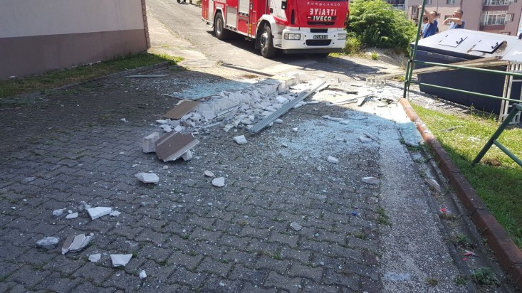 yangına müdahale etti. Patlamanın şiddeti ile balkondan kopan beton parçaları