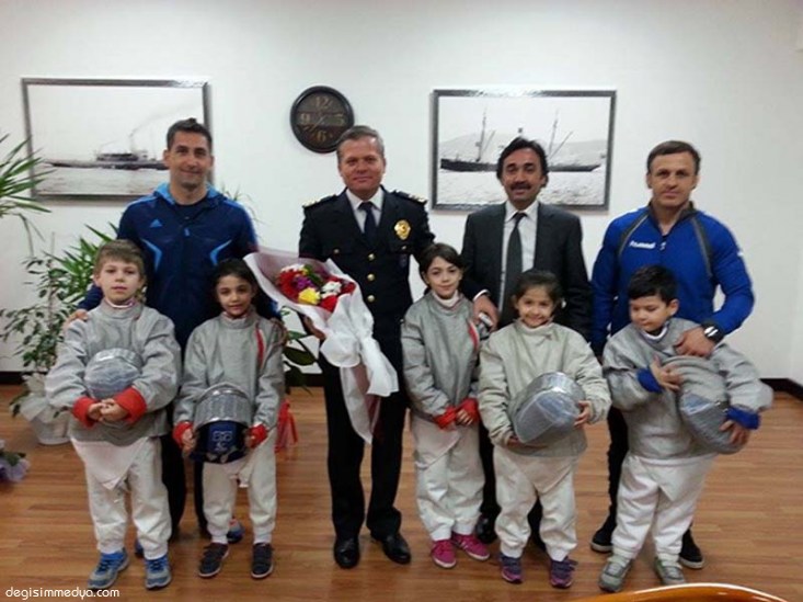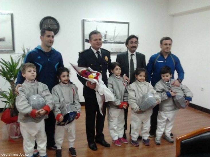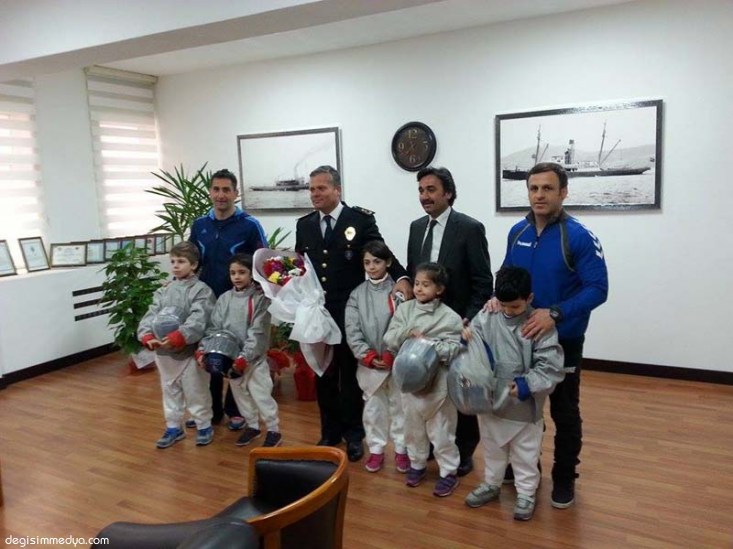 Kdz. Ereğli İlçe Emniyet Müdürü Timur Özgen ise minik eskrimcilerin ziyaretinden mutluluk duyduğunu belirtti.
