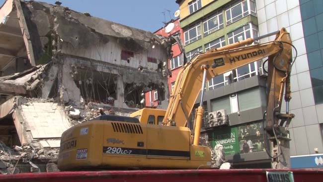 Zonguldak'ta 130 esnafın bulunduğu Merkez Çarşısı için depreme dayanıksız olduğu gerekçesiyle yıkım kararı alındı. Tamamen tahliye edilen binanın yıkımı devam ediyor.