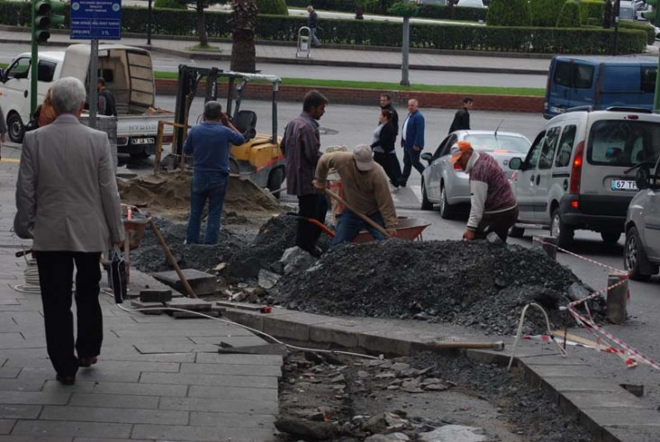 daha ereğli de onlarca kaldırım var burası kadar dar olan ne oldu da 50-60 metrelik bu kaldırımı genişletiyorsunuz. hayırdır.