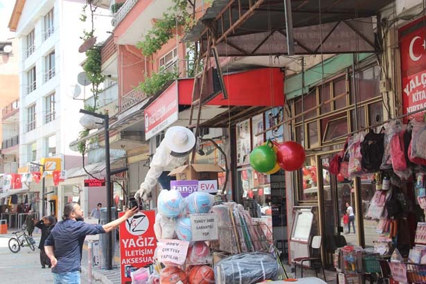 Alaplı Hükümet Caddesi üzerindeki bir kırtasiye dükkanın kepengine oğul atan