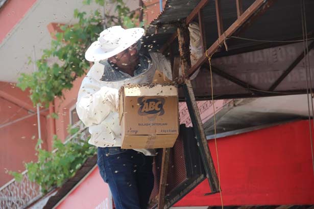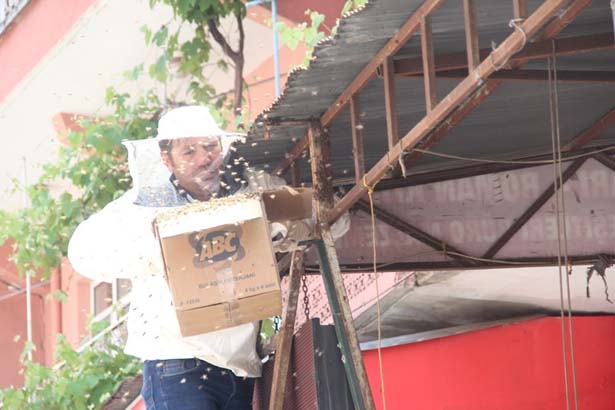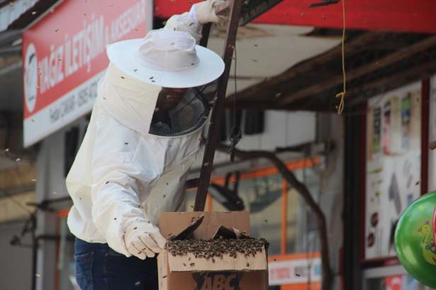 arıları amatör arıcılık yapan bir esnaf tarafından kutuya alınarak toplandı. Bu