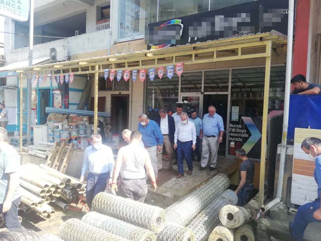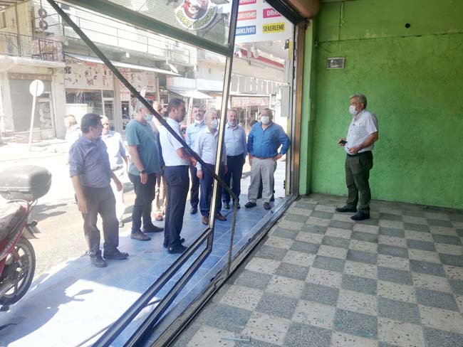 Belde sakinlerine 'geçmiş olsun' diyen heyet, meydana gelen doğal afet nedeniyle zarar gören ev, işyerleri ve kamusal alanlarda tespitlerde bulundu.