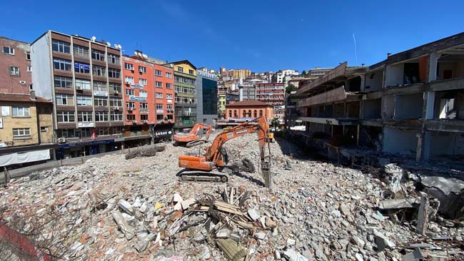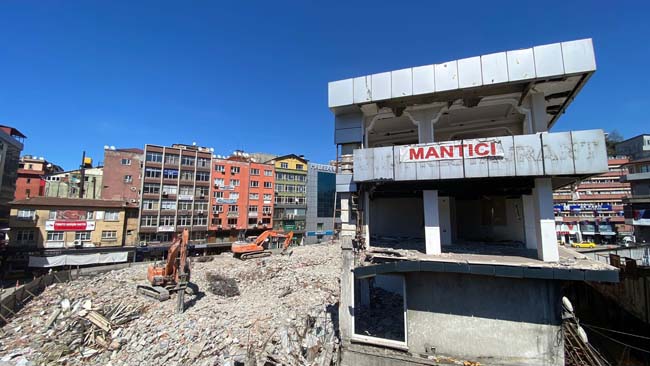 Zonguldak'ta 130 esnafın bulunduğu Merkez Çarşısı için depreme dayanıksız olduğu gerekçesiyle yıkım kararı alınan iş merkezinde yıkım devam ediyor.
