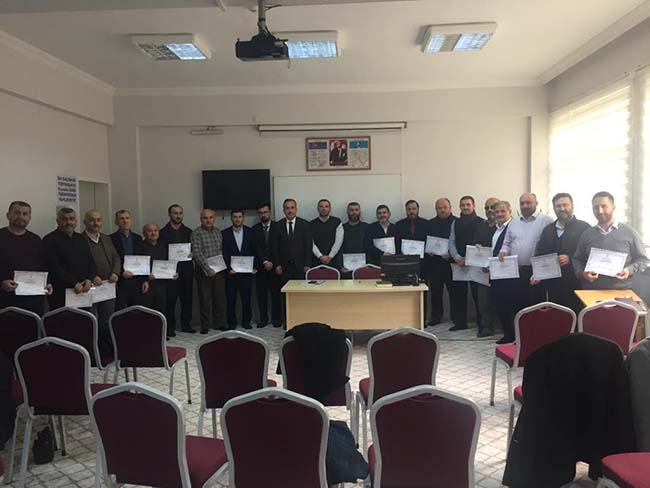 Zonguldak'ın Alaplı İlçesi Hafız Haydar Çaturoğlu'nda gerçekleştirilen 3 gün süren seminerde, katılımcılara hutbelerin hazırlanması, sunulması, ses ve diksiyon teknikleri, hitabet sanatları gibi konularda bilgiler verildi. Kur’an ı Kerim tilavetiyle başlayan seminerde açılış konuşması yapan İlçe Müftüsü Dr. Yılmaz Çelik,” Cami hizmetlerinin geliştirilmesi, bu hizmetleri yürüten görevlilerimizin mesleki yeterliklerinin artırılması, etkin ve verimli din hizmeti sunmalarına katkı sağlanması amacıyla 27-30 Kasım tarihleri arasında Hafız Haydar Çaturoğlu Kur’an Kursumuzda 20 personelimize“Etkili Hutbe Semineri” düzenledik. Seminerimizde, ”İrşat Yöntemi Olarak Hutbe ve Hatiplik, Hutbe Adabı, Hatibin Temel Nitelikleri, Ses ve Nefes Kullanımı, Türkçeyi Kullanma ve Güzel Konuşma Becerisi, Hutbe Sunumunda Yapılan Yaygın Hatalar ve Hutbe ile İlgili Fıkhi Konular” başlıklarında sunumlar gerçekleştirdik. Tüm İmam-Hatip ve Müezzin-Kayyım ünvanında olan hocalarımız peyderpey bu seminerlere katılacaklar. Seminerlerimizin etkisinin tesir etmesini ve hayra vesile olmasını Cenab-ı Haktan niyaz ediyorum.”dedi. Seminerin son gününde seminere katılan personele Katılım Belgesi takdim edildi.
