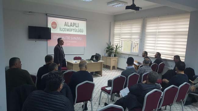 Alaplı İlçe Müftülüğü , Hizmet İçi Eğitim Programı çerçevesinde personeline yönelik “Etkili Hutbe Sunumu” semineri düzenledi.
